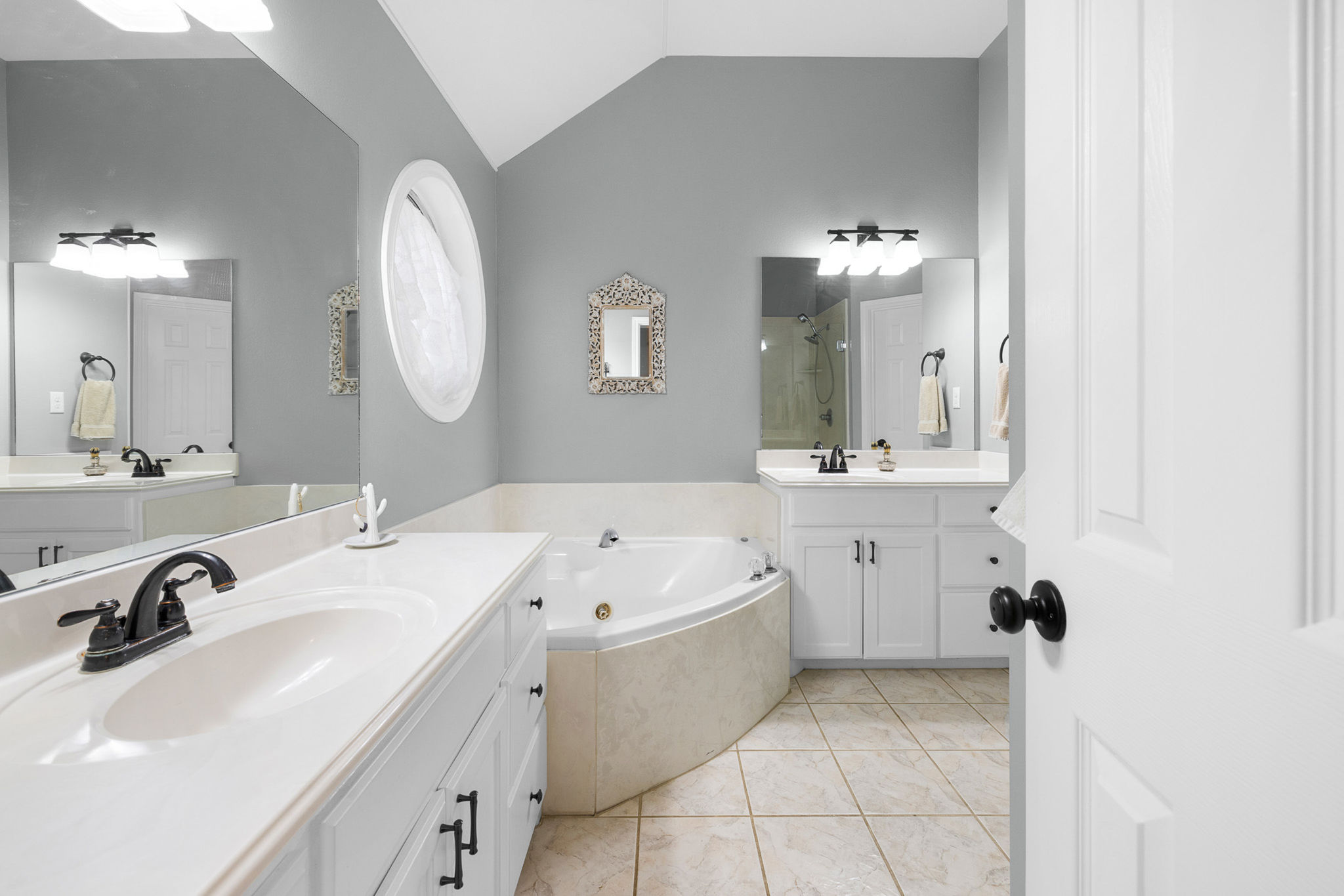 Inside, the single-story layout features a spacious living area with wood flooring, a bright kitchen with granite counters, stainless steel appliances, and plenty of storage, plus a breakfast nook overlooking the backyard. A formal dining room sits just off the kitchen and is currently set up as a home office. The primary suite includes a tray ceiling and private bath with double sinks, a jetted tub, separate shower, and walk-in closet. Guest bedrooms have elevated ceilings and large closets, adding comfort and function.